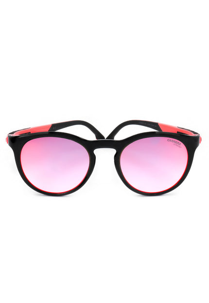 Occhiale da sole Carrera unisex, di forma pantos, in poliammide di colore nero con lente rossa sfumata. Questi occhiali sono forniti con una custodia protettiva.
