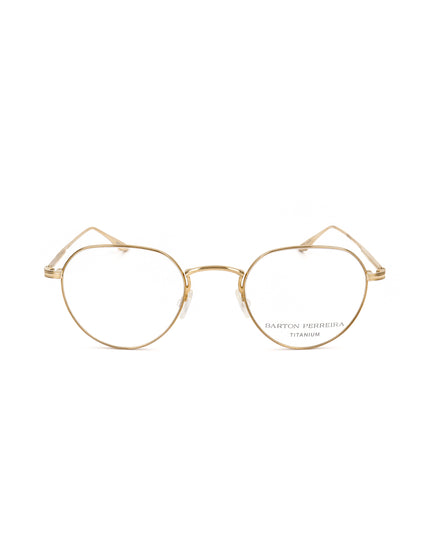 Moška korekcijska očala Barton Perreira so izdelana iz titana v zlati barvi, kar zagotavlja lahkost in trpežnost. Ta model se ponaša s sodobnim in elegantnim oblikovanjem, ki je primeren za različne priložnosti. Očala so priložena zaščitnemu etuiju, kar omogoča varno shranjevanje in enostavno prenašanje. S svojo privlačno barvo in vrhunsko izdelavo so ta korekcijska očala odlična izbira za moške, ki želijo izstopati s prefinjenim in prefinjenim stilom.
