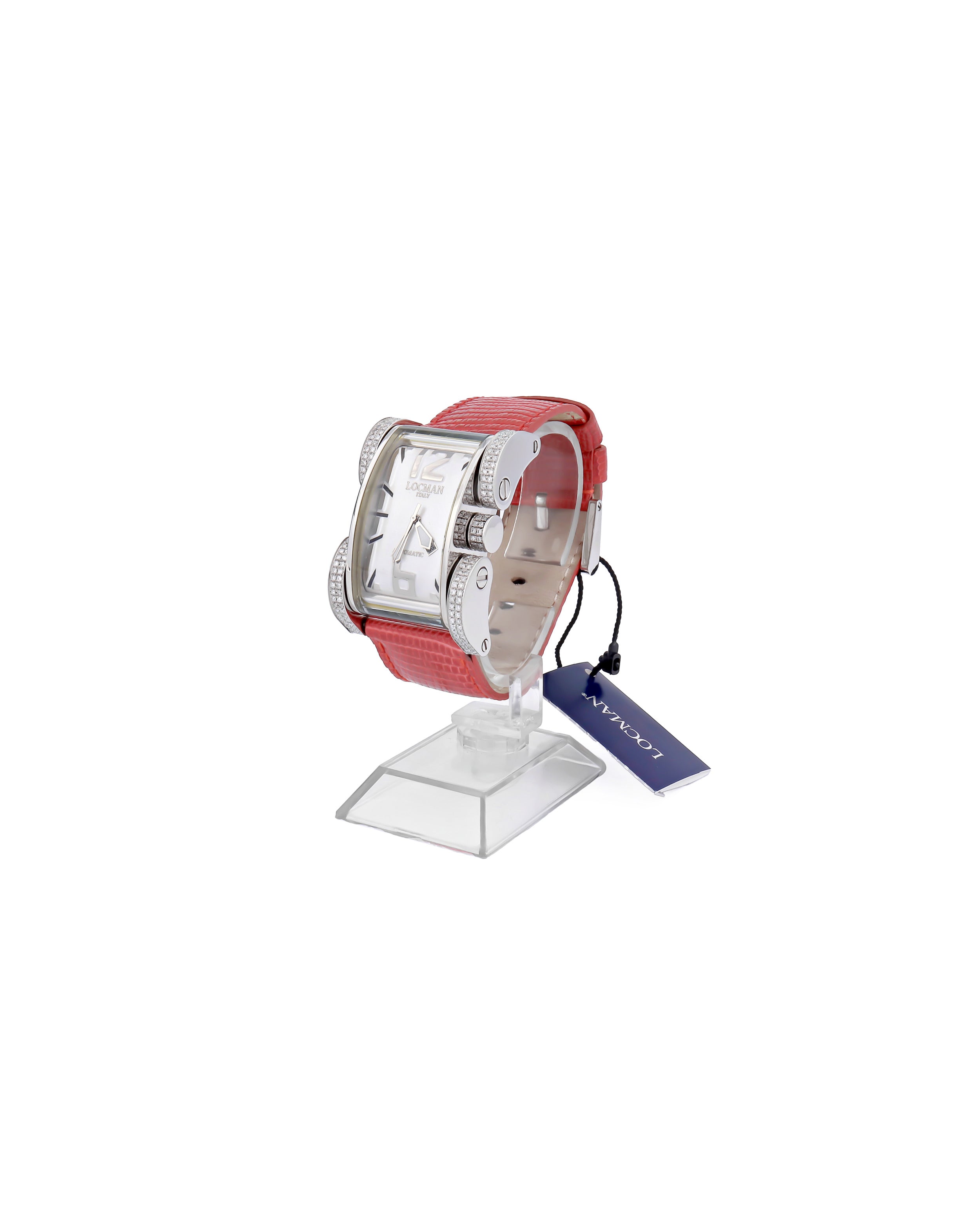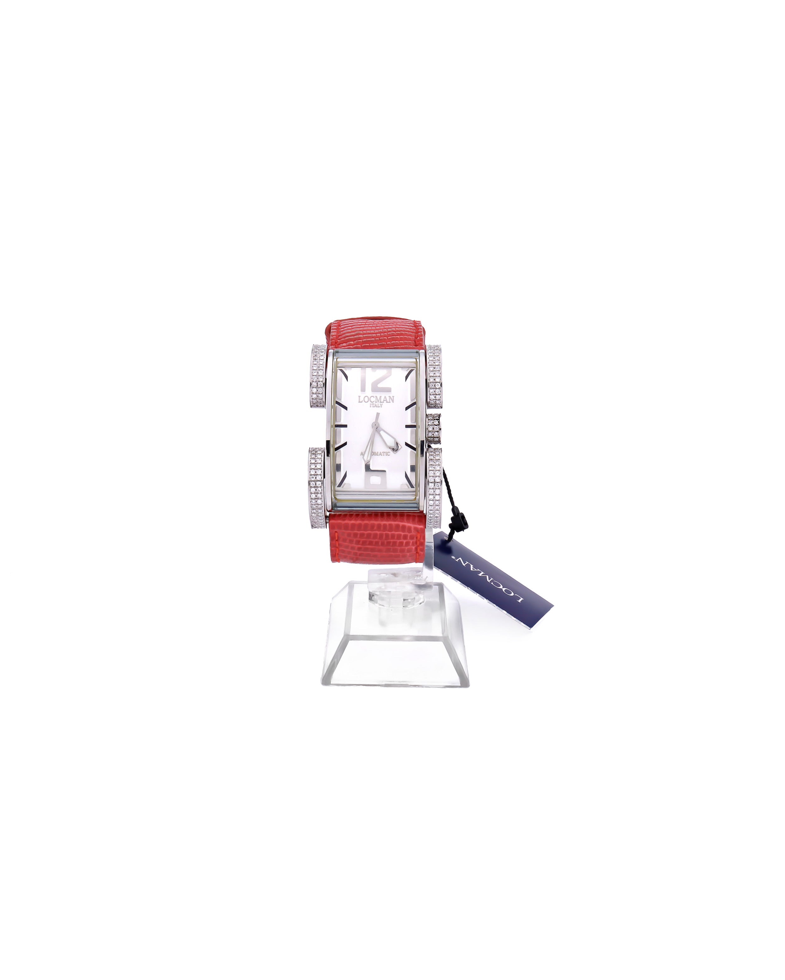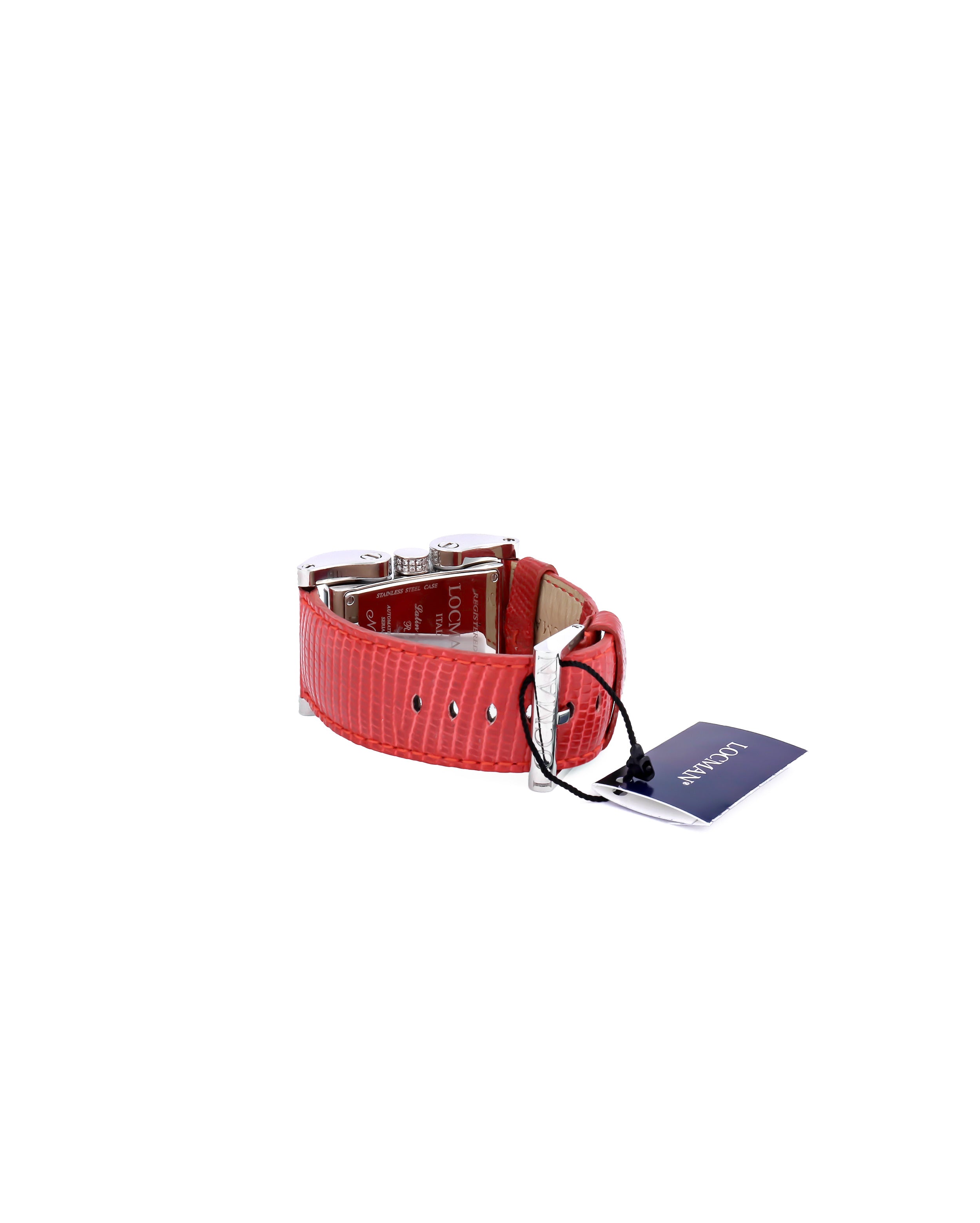 Orologio Locman di colore rosso e acciaio pavè diamanti modello 0501D0AG0005LUR